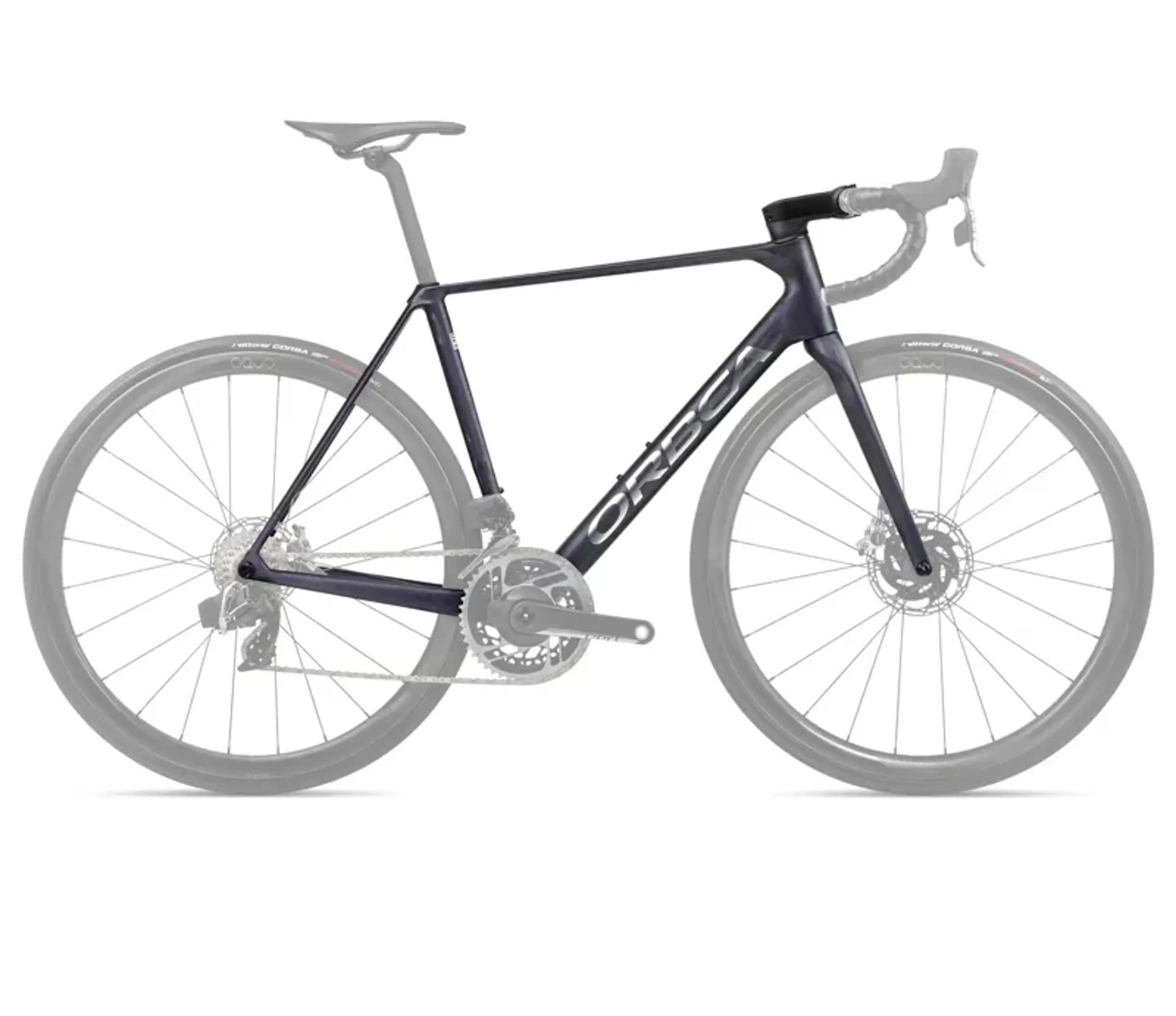 Orbea Orca carbon OMX 2024, monocoque construction, HS 1,5", BB 386mm, powermeter compatible, Rear Thru Axle 12x142mm, thread M12x2 P1, internal cable routing.