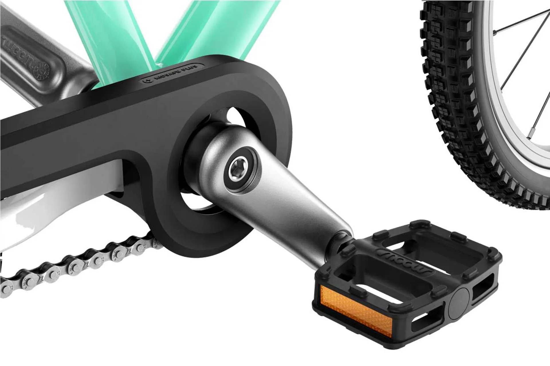 The compact and sturdy chainguard provides your child with effective protection against injuries and dirt – and gives you easy access to service the chain.