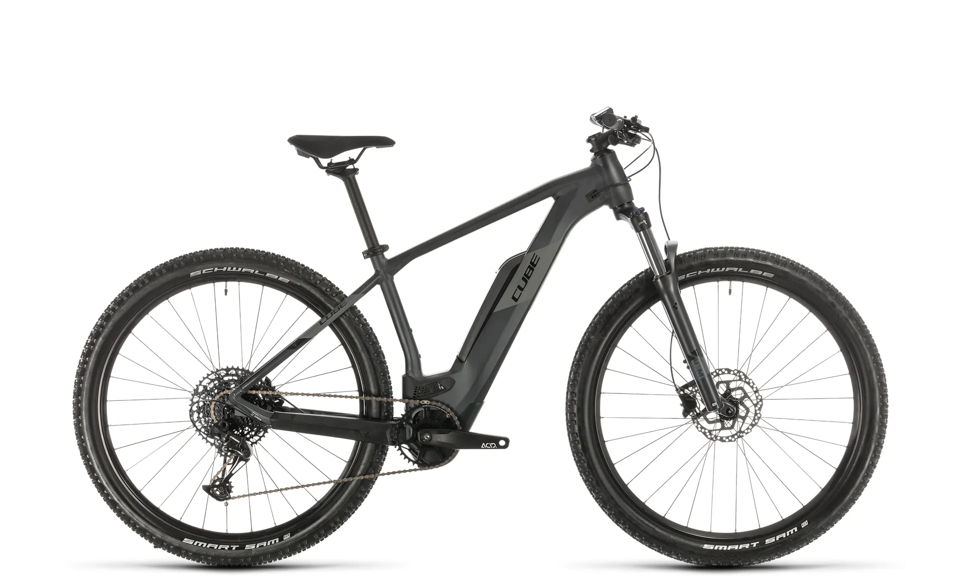 In the case of the Reaction Hybrid Pro, it was a simple one: build a Bosch e-bike that will help its rider get more out of the trails they ride. To that end, they went back to the drawing board for 2020 and came up with a brand-new frame design that's sleeker, stiffer and more versatile than ever, incorporating Bosch's fourth-generation CX motor. Integrated cable routing complements the clean lines and reduces maintenance, whilst compatibility with CUBE accessories and a remote dropper post makes upgrading and accessorising a cinch. The seamlessly integrated Bosch drive unit and battery, controlled via a Purion handlebar-mounted interface, quietly and efficiently gets on with the job of boosting your pedal power for easier climbs, faster routes and expanded horizons. You can even charge the battery without removing it from the frame. Sram's superb SX Eagle 12-speed transmission provides an awesome gear range, while Shimano's smooth, powerful MT200 hydraulic disc brakes ensure you can control your speed whatever the weather or trail conditions. Extra-wide, grippy Schwalbe Smart Sam tyres offer ample grip and cushioning and our Natural Fit Sequence saddle ensures you'll stay comfortable on even the longest rides. Best of all, our Size Split system - and the option of a trapeze frame - means that there's a Reaction Hybrid Pro to suit every rider. Which means that there's nothing stopping you from getting more out of your riding...