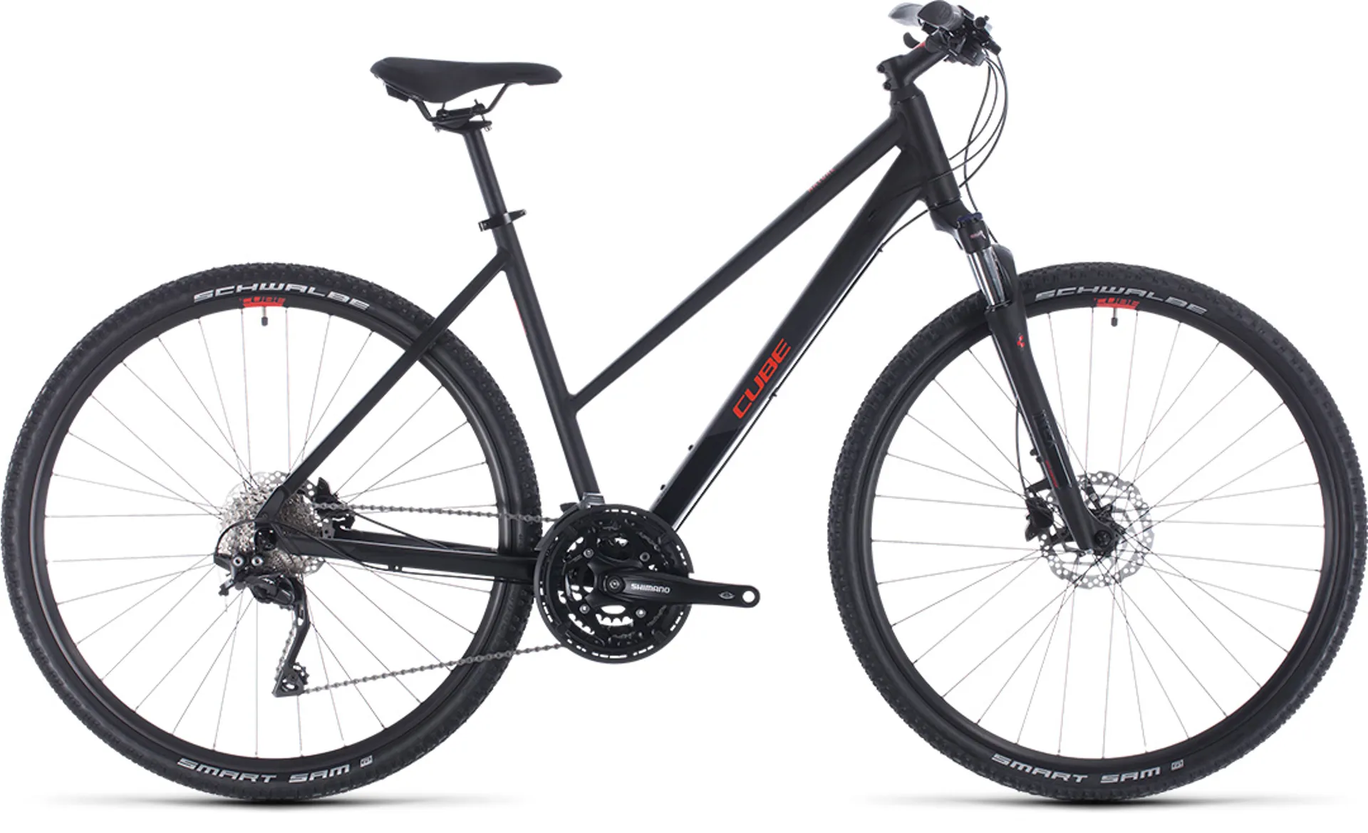 We gave our design team a brief to build a sporty, reliable bike with well-balanced handling, great equipment and the best possible safety. It's safe to say they came up trumps. With its high-quality, lightweight aluminium frame, lockout-equipped Suntour suspension fork and 3x10 Shimano transmission, this is a bike that simply excels. Neat touches like the double-butted frame tubing - which saves weight without sacrificing strength - and internal gear cable routing - for cleaner looks and more reliable gear shifting - are typical of the attention to detail that our design team lavishes on every one of our bikes. Grippy tyres and powerful hydraulic disc brakes give you the power and confidence to control your speed in any weather conditions, and the entire bike has survived the usual CUBE torture-testing regime in our in-house lab, so you can be sure that it's one of the safest bikes out there. Whether you use it for fitness and fun, or as a workhorse companion to help you keep pace with your busy life, the Nature EXC will get you where you need to go in comfort and style.