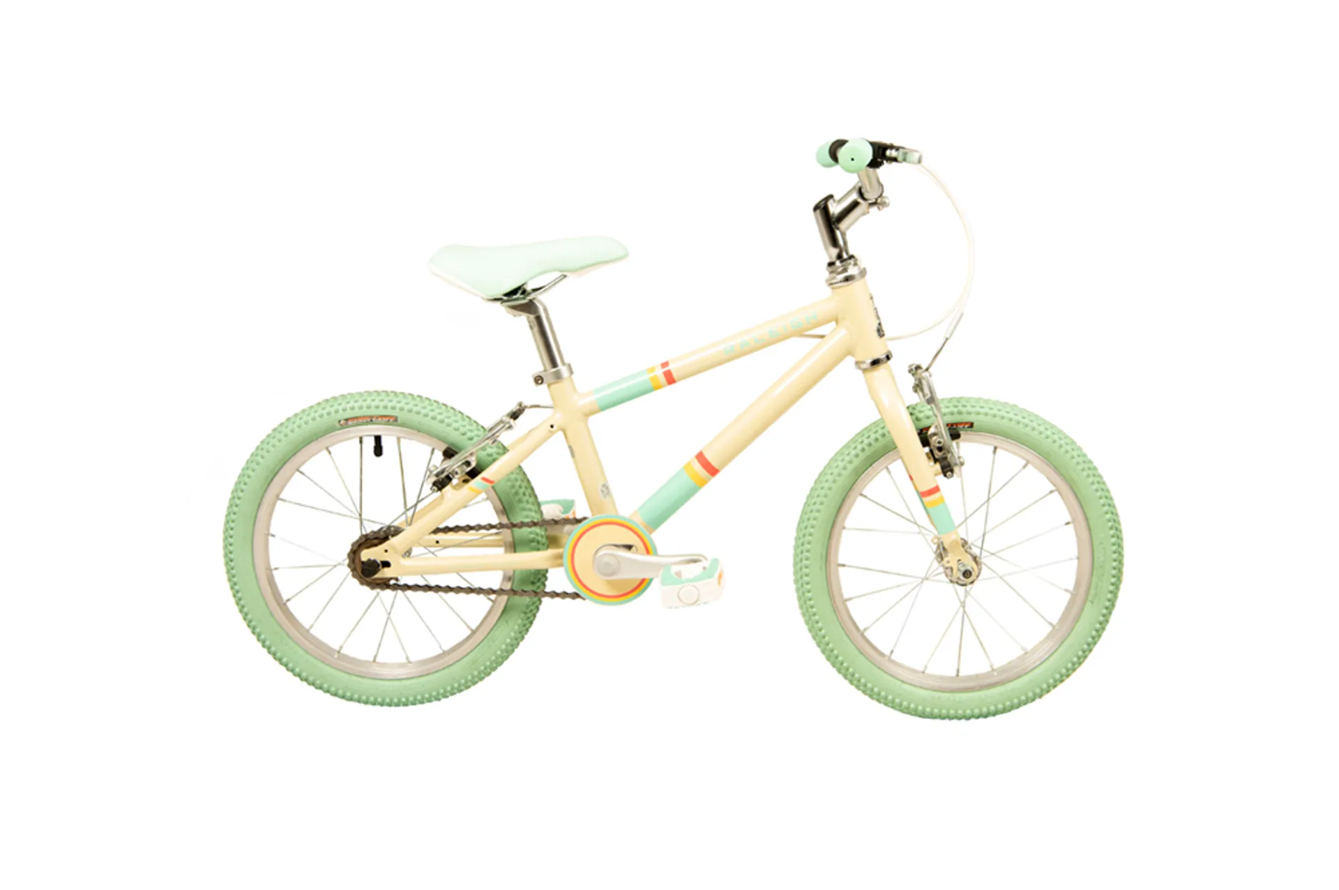 The fun colour scheme and classic cream frame make this a stand out piece, and results in a bike that is as unique as the rider.