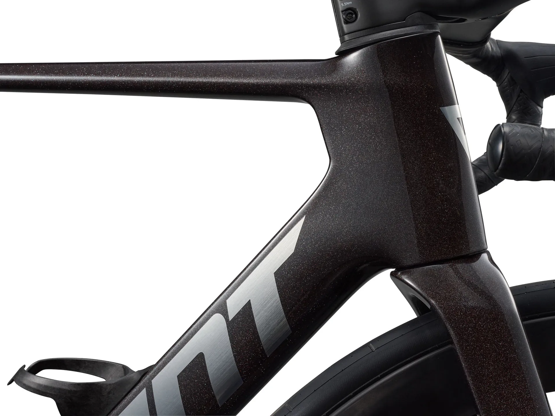 The Obsidian Pulse colourway gives the bike a bold, stealth‑inspired look. Deep graphite tones blend with subtle metallic highlights, emphasising the sculpted aero lines of the frame. It’s a finish that looks fast standing still and even faster at full gas.
