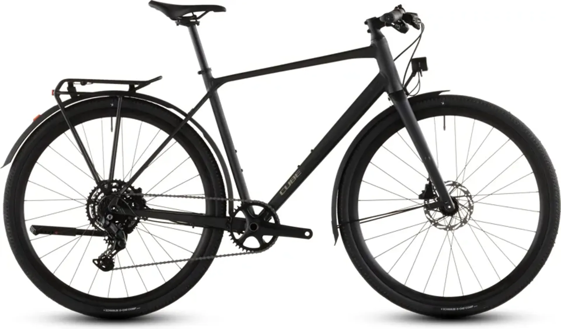 Featuring a comfortable carbon fork for reassuringly precise steering and powerful hydraulic disc brakes to ensure safe stopping in any weather, its 40mm Schwalbe tyres are both fast-rolling and grippy whether you're on city streets or country roads. Shimano's wide-ranging and easy-to-use Cues 1x9 gears will help you tackle any route. This model includes a full complement of practical accessories – including luggage carrier, mudguards and lights – so that you're ready for any journey. For work, for play, for any reason at all... it's got your back.