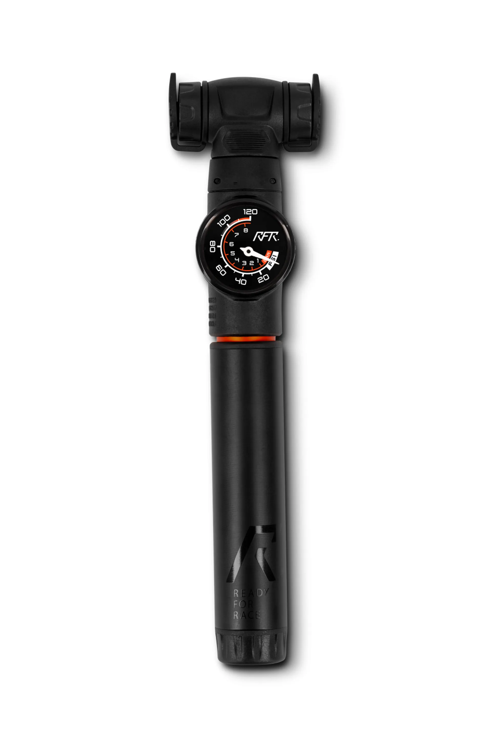 All bikes, one pump: The premium aluminium HPA ALL IN ONE Pump from RFR with its patented head design is compatible with all valve types (Dunlop, Schrader, Presta) for maximum flexibility